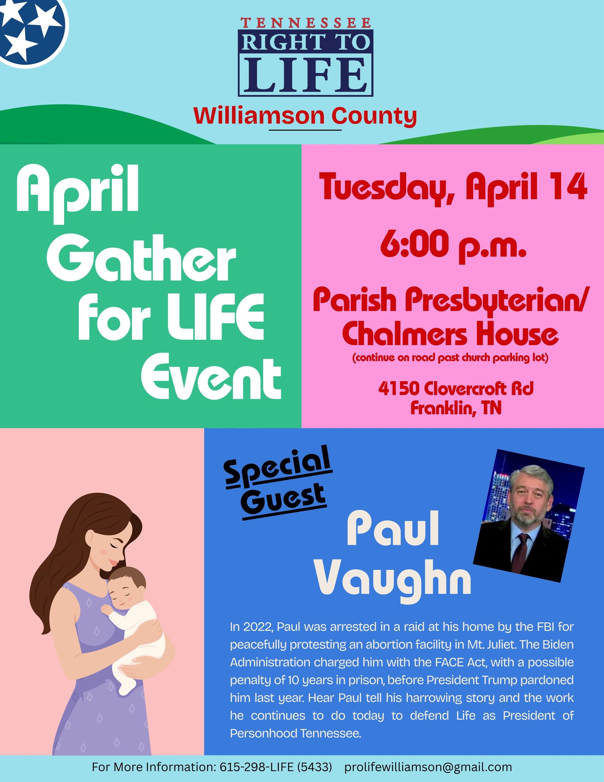 At Tennessee Right to Life Williamson County, our mission is to advocate for the right to life of every innocent human being. We strive to promote positive pro-life education and support life-affirming public policies that protect the vulnerable.